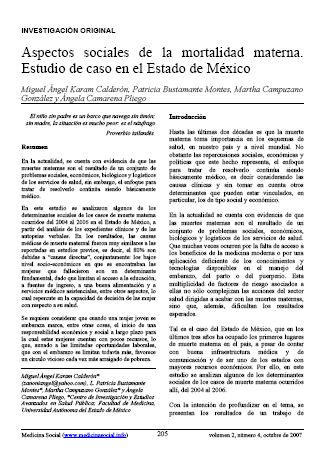 En este estudio se analizaron algunos de los determinantes sociales de los casos de muerte materna ocurridos del 2004 al 2006 en el Estado de México, a partir del análisis de los expedientes clínicos y de las autopsias verbales. En los resultados, las causas médicas de muerte maternal fueron muy similares a las reportadas en estudios previos, es decir, el 80% son debidas a “causas directas”, conjuntamente: los bajos nivel socio-económicos en que se encontraban las mujeres que fallecieron son un determinante fundamental, dado que limitan el acceso a la educación, a fuentes de ingreso, a una buena alimentación y a servicios médicos asistenciales, entre otros aspectos, lo cual repercute en la capacidad de decisión de las mujer con respecto a su salud.